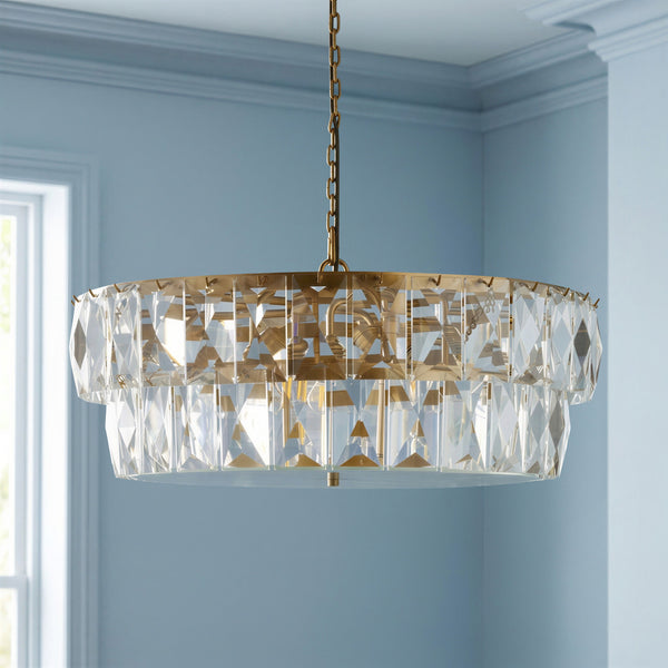 two tiered conchita chandelier in prismatic glass and brass see dimensions
