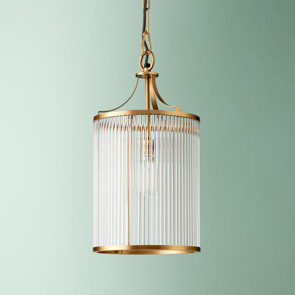 The Valli is part of our outstanding glass rod collection. This simple brass lantern is surrounded by thin glass rods, which reflect, refract and make the light dance. A very elegant hall lantern. Might need the occasional gentle run over with a feather duster.