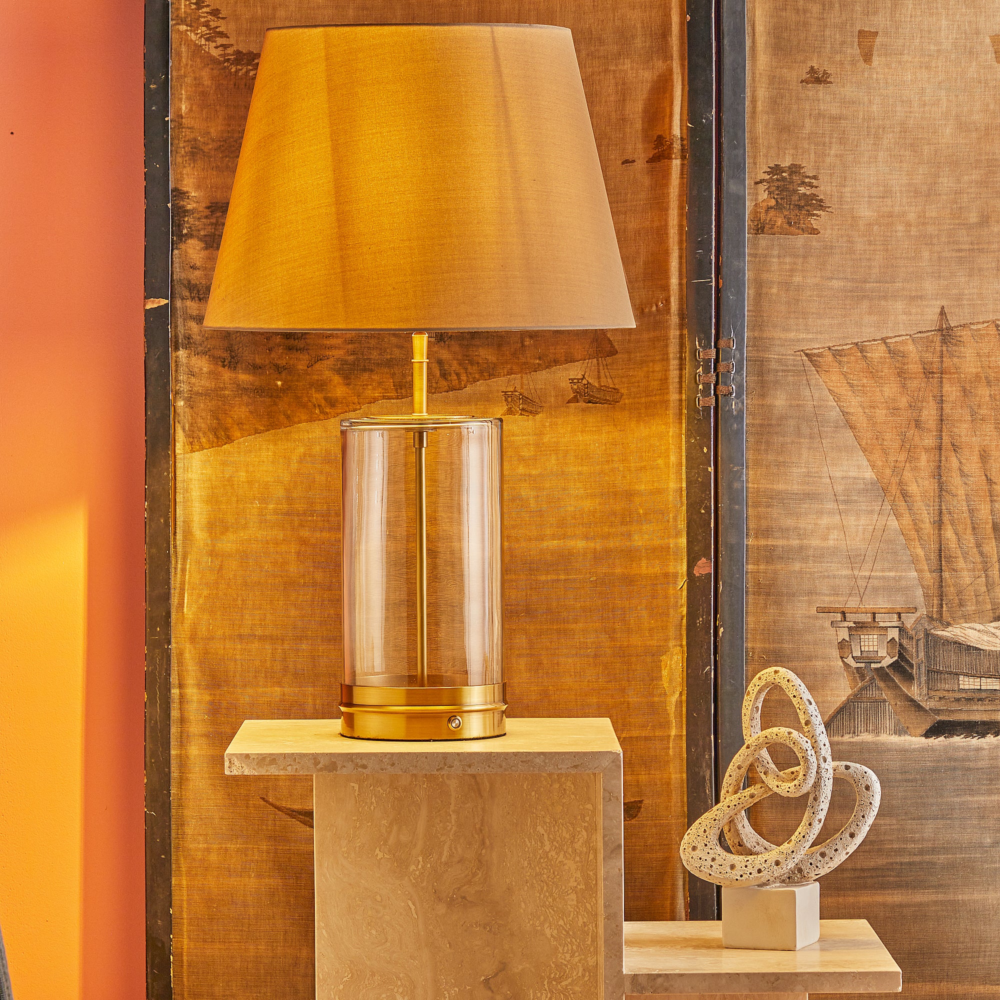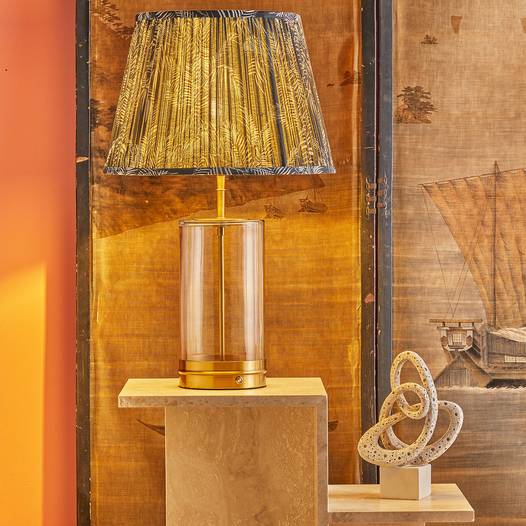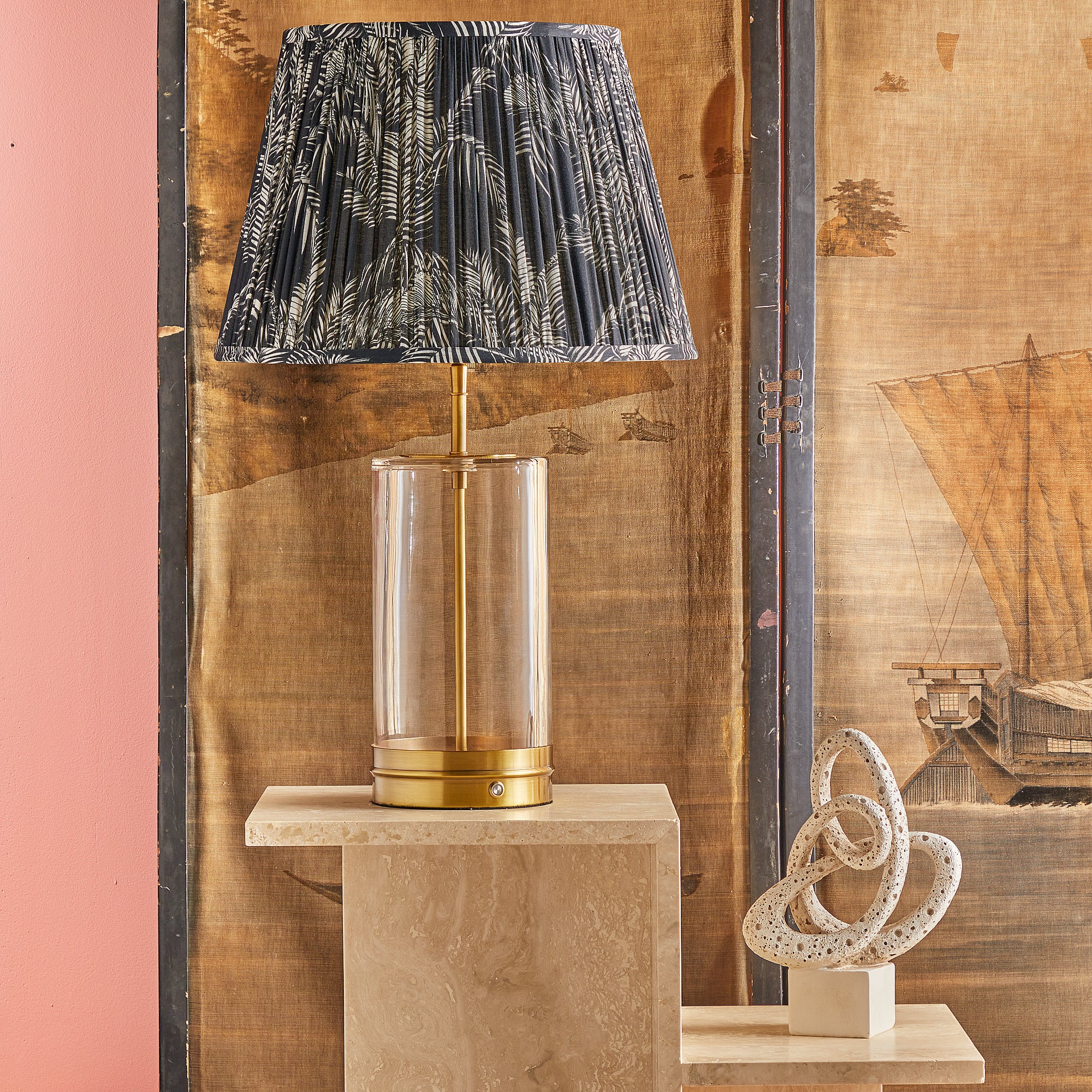 wisteria rechargeable table lamp in glass finished in antique brass see dimensions