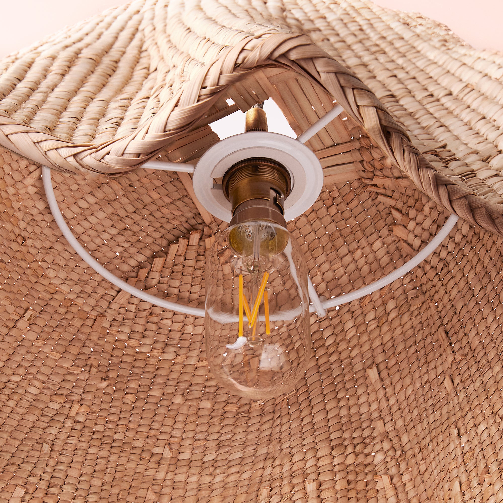 This fabulous shade is woven in one of the many rural villages in Zimbabwe where these crafts still thrive. We work with a brilliant cooperative organisation that brings work to these communities and helps keep these age old artisan skills alive. All the weavers are women. They are beautifully made, wonderfully decorative and each piece unique. We are proud to be a part of this project.